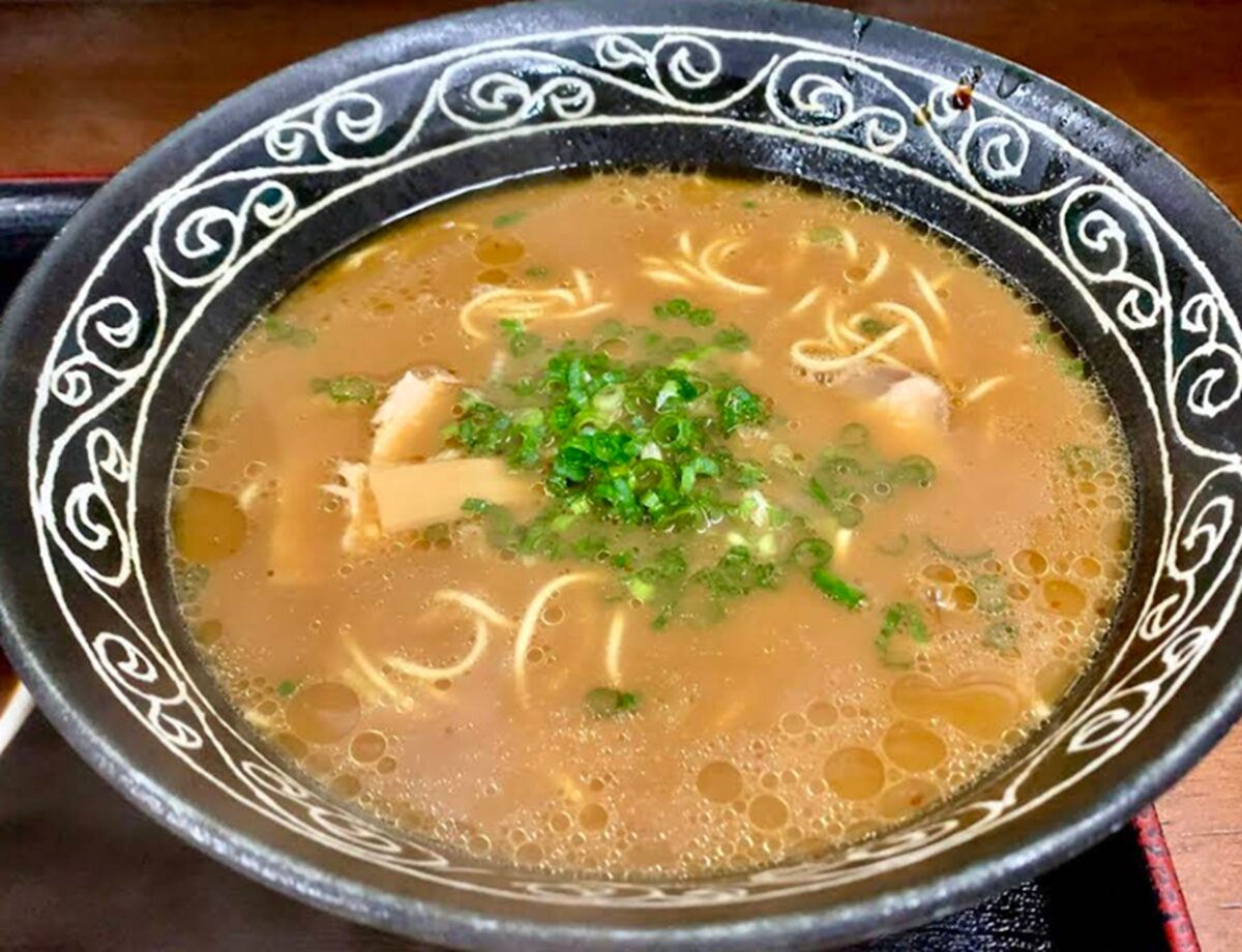 - 中華そばのスープは豚骨をベースにして数種類の野菜が入った醤油豚骨の濃厚スープ!